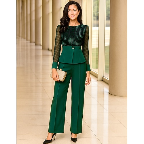 Completo a Due Pezzi Pantaloni Lunghezza Caviglia Abito per la Madre della Sposa Maniche Lunghe Collo A Giro Elegante Vintage Formale da Sposa con Colore Blocco