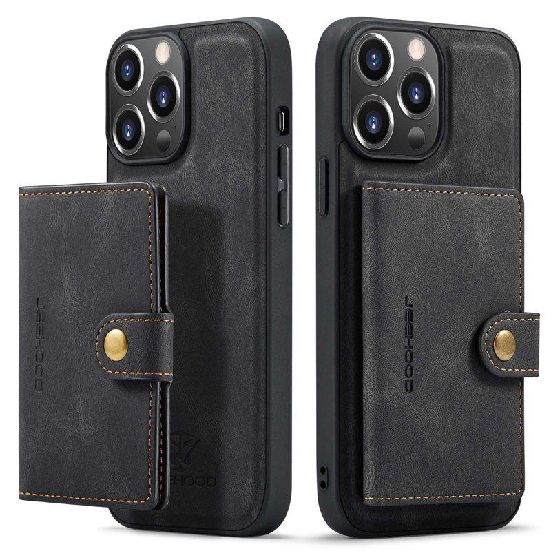 JEEHOOD iPhone 14 Pro Konstläder Plånboksfodral Retro Stöttålig 2-i-1 Svart