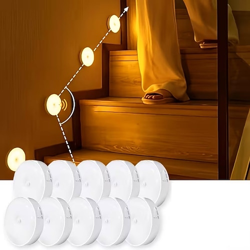 10 luci a 8 LED con sensore di movimento PIR, ricaricabili tramite USB, ideali per scale, comodini, camera da letto e corridoi.