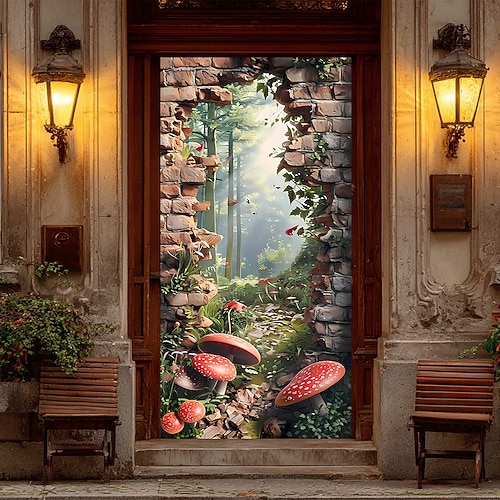 Poster Copertura della porta Banner per esterni Funghetto Carino 3D Fantasia Da serata Dormitorio Stanza per adolescenti Dormitorio universitario Ragazzi Man Cave Frat Bedroom Sfondi di ripresa