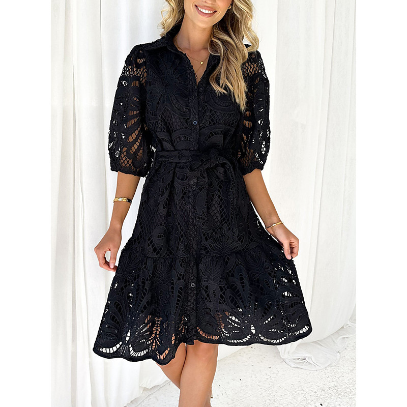 Women's Midi Dress Black Dress Lace Dress Cocktail Dress Formal Dresses Elegant Casual Street Date Loose Fit Plain Half Sleeve Shirt Collar Blue Black Pink Summer Spring