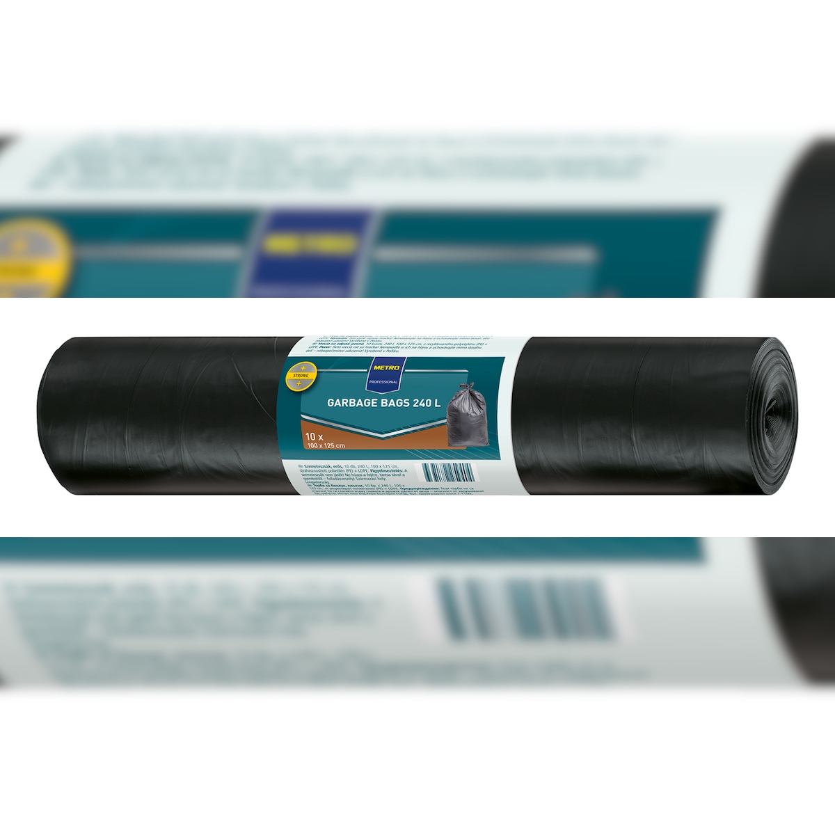 METRO PROFESSIONAL Müllsack, 100 x 125 cm, 240 L, mit Zugband, schwarz, 2 x 10 Stück, 4 Packungen
