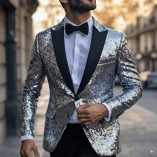 Giacca da uomo blazer per matrimoni o feste casual per tutte le stagioni elastan poliestere di colore solido basic blazer monopetto con un bottone argento nero rosso blu