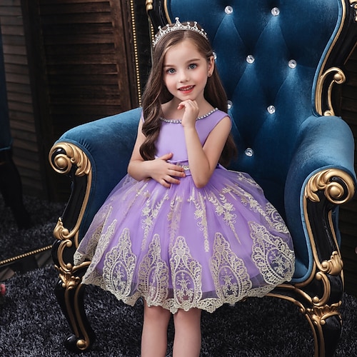 Abito da damigella d'onore bambina Ragazze Abito formale Abiti da sposa Feste Matrimonio Formale Adorabile Principessa Bello Patchwork Ricamato Floreale Senza Maniche Girocollo Nero Champagne Dai 4
