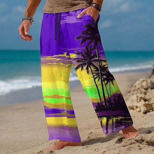 Per uomo Albero di Cocco Piante Tropicali Pantaloni di Lino Pantaloni Pantaloni Larghi Misura del girovita medio Hawaiano Casual Vacanza Abbigliamento casual alla moda Abbigliamento mare Coulisse