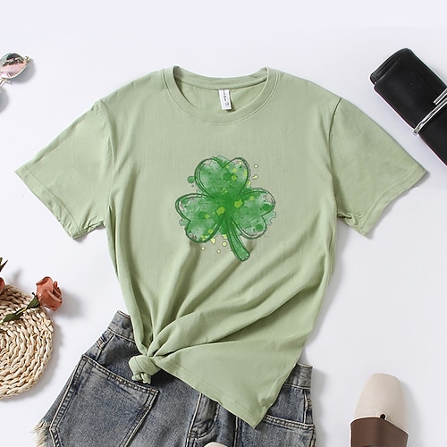 Per donna maglietta Trifoglio Festa di San Patrizio Informale Verde primavera Nero Bianco Stampa Manica corta Di tendenza Rotonda Standard Primavera estate
