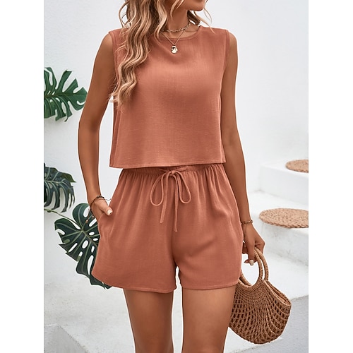 Per donna Set di Pantaloncini Senza Maniche Girocollo Tinta unica Moda Streetwear Casuale Quotidiano All'aperto Blu Nero Arancione Estate Vestibilità regolare