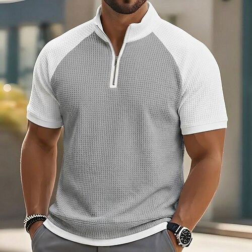 Per uomo Magliette Polo a Nido d'Ape Casuale Ferie Colletto Mao Manica Corta Essenziale Moderno Plaid Blocco di colori Blocco di colore Bottoni Estate Primavera Primavera Estate Oversize Blu Nero