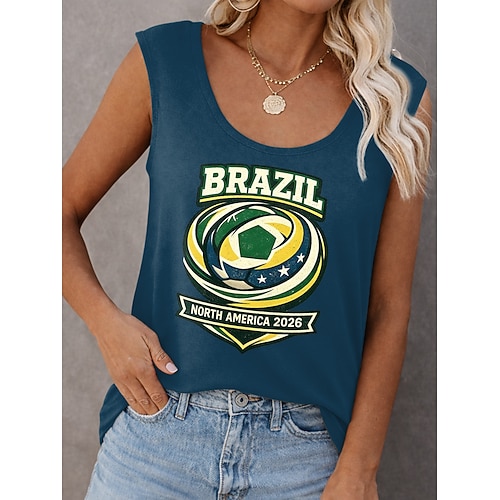 Top Donna Coppa del Mondo di Calcio 2026 Canotta Tessuto Waffle Magliette Grafiche Squadra di Calcio Vintage Tropicale Elegante Senza Maniche Collo tondo Regular Tops Quotidiani Weekend Blu Nero