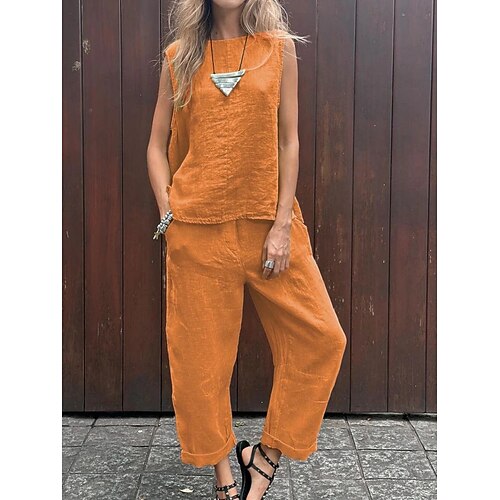 Per donna Set di Pantaloni Bolero Senza Maniche Girocollo Semplice Moda Streetwear Casuale Quotidiano All'aperto Blu Nero Giallo Estate Vestibilità comoda