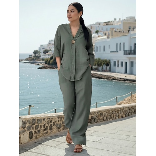 Per donna Set di biancheria in cotone Set di Pantaloni Manica 3/4 Scollo a V Tinta unica Moda Streetwear Casuale Quotidiano All'aperto Blu Nero Bianco Primavera Estate Vestibilità comoda