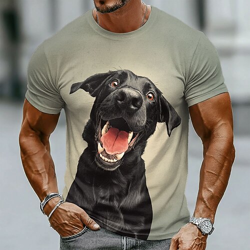 Maglietta da uomo con stampa 3D di un cane nero arrabbiato che ringhia, iperrealistica, divertente e umoristica, con scollo rotondo, vestibilità regolare, streetwear, abbigliamento casual di design,
