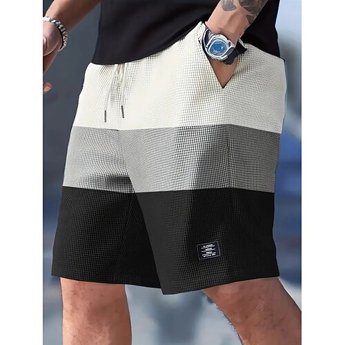 Per uomo Pantaloncini Waffle Shorts Pantaloncini casual Tasca Elastico in vita Semplice Comodità Traspirante Lunghezza al ginocchio Casuale All'aperto Spiaggia Vacanza Moda Nero Bianco Inelastico
