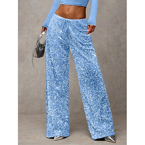Per donna Pantaloni Pantaloni casual Dritto Moda Streetwear Essenziale Lunghezza intera Vita Alta Semplice Paillettes Tasca Elastico in vita Confortevole Micro-elastico Quotidiano Vacanza Feste Nero