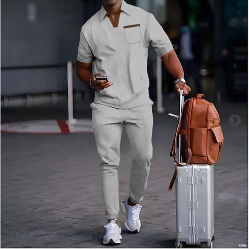 Per uomo Camicia Set Camicia Camicia Estiva Camicia casual Camicia da Spiaggia Camicia con Bottoni Nero Bianco Blu reale Grigio chiaro Azzurro Manica Corta Semplice Bavero Vacanza Camicia hawaiana