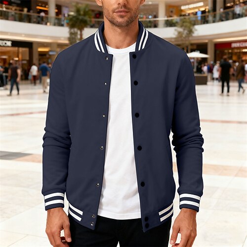 Per uomo Giacca Leggera Giacca Casual Giacca College Casuale Quotidiano Tasca Primavera Autunno A righe Streetwear Elegante Colletto Mao Regolare Nero Rosso Blu marino Blu reale Grigio chiaro Giacca