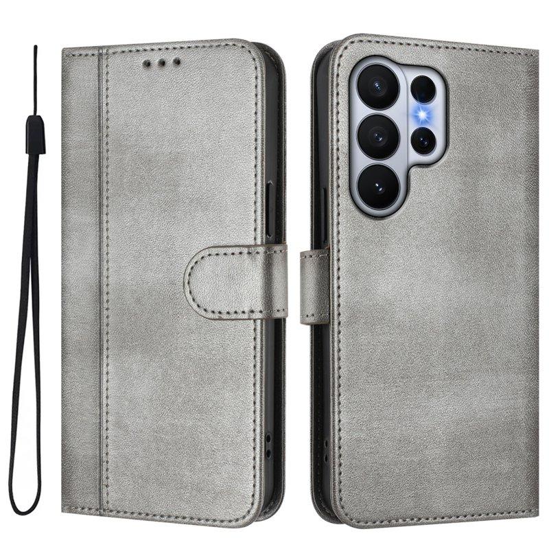 Samsung Galaxy S26 Ultra Plånboksfodral Ställ Retro Textur Konstläder - Grå