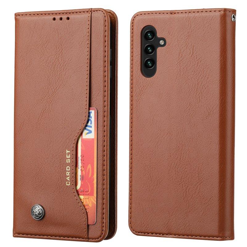 Mobilskal för Samsung Galaxy S26 Plus Magnetiskt Konstläder Ställ - Ljusbrun