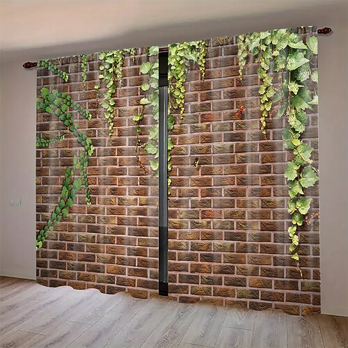 2 tende con stampa floreale e vegetale, tende in poliestere con passante per asta, tende con stampa botanica verde per soggiorno, camera da letto, cucina, dormitorio, decorazione per la casa.