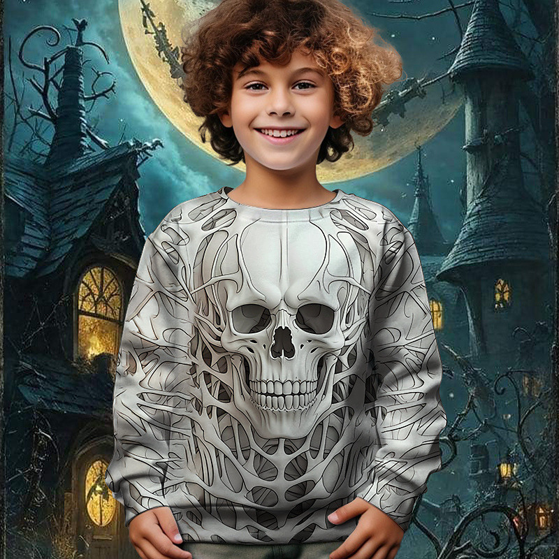 Halloween Boys' 3D Skull Sweatshirt Long Sleeve Spring Fall Fashion Basic Kids 4-12 Years Crew Neck Outdoor Casual Daily Regular Fit