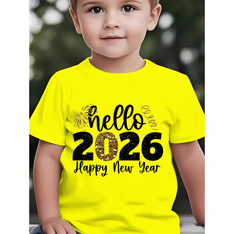 Boys' 2026 New Year'S Party 3D Graphic Letter T shirt Tee Short Sleeve 3D Print Summer Spring Sports Fashion Streetwear Kids 4-12 Years Crew Neck Outdoor Casual Daily Regular Fit