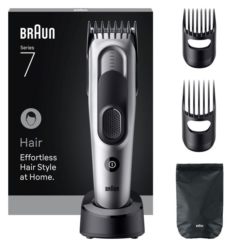 Braun Hair Clipper Series 7, +5 Styling Tools, Lifetime Sharp Blade, 17 Lengths, HC7590, Grey