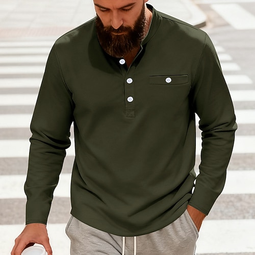 Per uomo Maglietta Maglia Henley Camicia a Maniche Lunghe Manica Lunga Henley Primavera Autunno Semplice Moda Streetwear Tempo libero Bottoni Vacanza Sport Outdoor Casuale Grigio scuro Aalbicocca