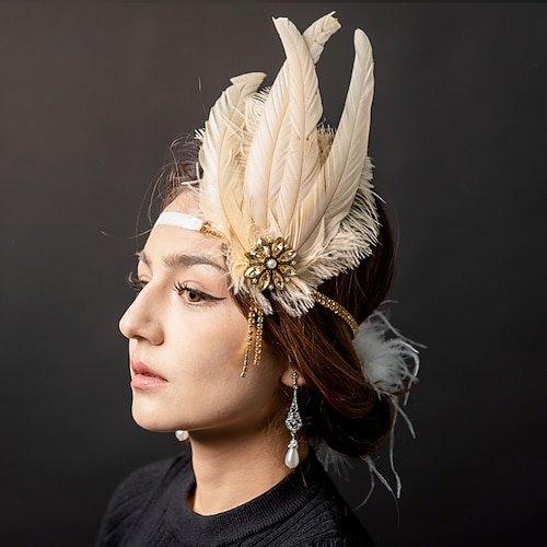 Retrò Vintage Anni Ruggenti Anni 1920 Fascia Flapper Copricapo Accessori per la testa Il grande Gatsby Piuma Costume Per donna Natale Carnevale Mascherata Festa a tema retrò Danza Charleston Adulti