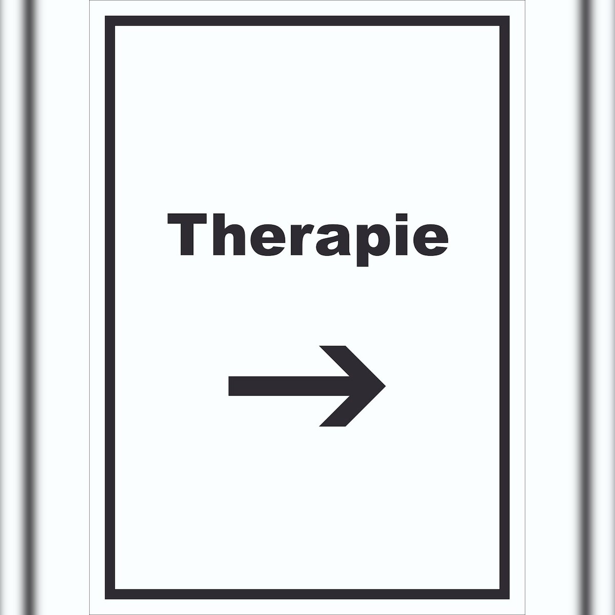 HB-Druck Therapie Schild mit Text und Richtungspfeil rechts Raum Behandlung hochkant A1 (594x841mm)