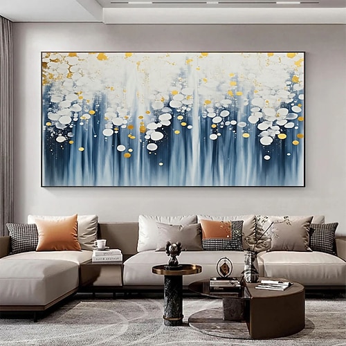 blu navy fatto a mano opera d'arte astratta fatta a mano in foglia d'oro, dipinto su tela acrilica blu scuro, arredamento estetico moderno per soggiorno, arte su tela dorata