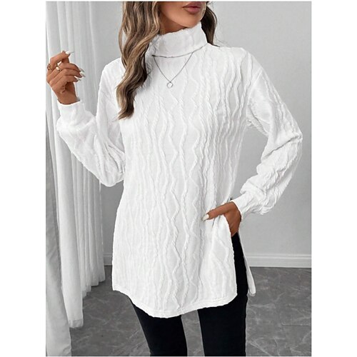 Per donna Blusa Tinta unica Elegante Casual Manica Lunga Dolcevita Top lunghi Quotidiano Arricciato Nero Bianco Blu Primavera Autunno Inverno