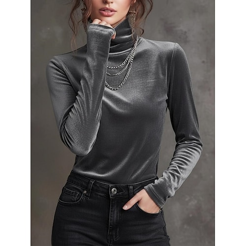 Per donna Blusa Tinta unica Elegante Casual Manica Lunga Dolcevita Top Regolari Quotidiano Arricciato Grigio Primavera Autunno Inverno