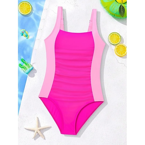 Bambini Ragazze Costume da bagno All'aperto Spiaggia Blocco di colori Vacanza Moda Patchwork Costumi da bagno Dai 4 anni in su Estate Blu Nero