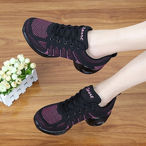 Women's Breathable Knit Jazz Dance Shoes – Lightweight Soft Sole Slip-On Dance Sneakers for Practice Performance