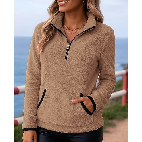 Per donna Felpa con zip Felpa in pile Tasca Manica Lunga Top Athleisure Tinta unita Antivento Caldo All'aperto Viaggio Sportivo abbigliamento sportivo Abbigliamento sportivo Nero Bianco Rosa