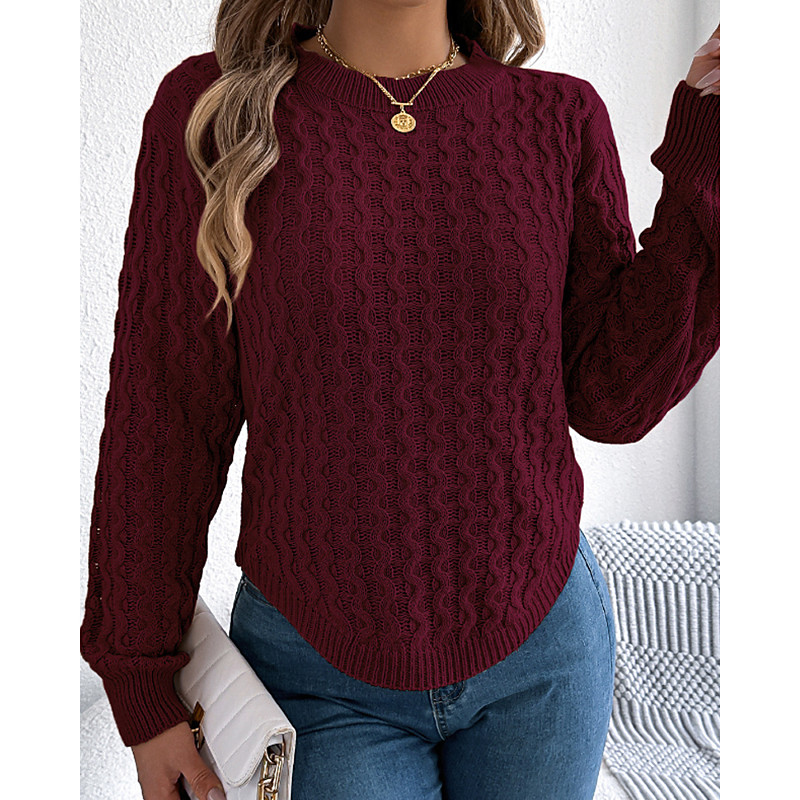 Women's Sweater Pullover Streetwear Casual Solid Color Cable Crew Neck Knitted Long Sleeve Regular Tops Knit Daily Holiday Going out Wine Red White Fall Winter