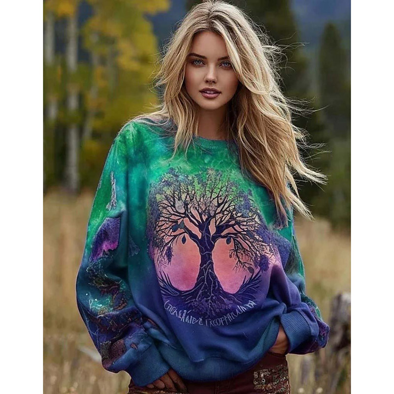 Women's Pullover Graphic Tie Dye Abstract Elegant Warm Vintage Long Sleeve Crew Neck Regular Tops Home Street Dailywear Print Blue Red Orange Green Spring Fall Winter