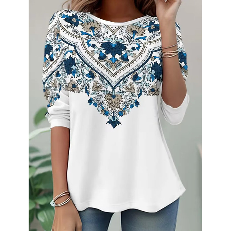 Women's T Shirt Graphic Paisley Vintage Stylish Casual Long Sleeve Crew Neck Regular Tops Daily Weekend Print Black White Fall Winter