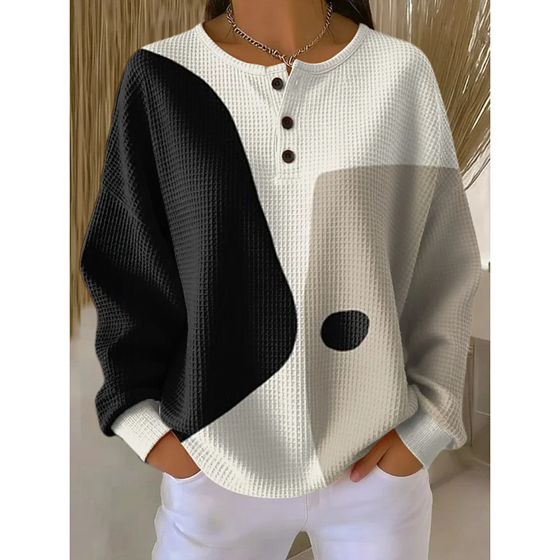 Women's Pullover Sweatshirt Graphic Geometric Warm Classic Casual Long Sleeve Crew Neck Regular Tops Casual Street Dailywear Buttons Print Blue Yellow Red Purple Spring Fall Winter