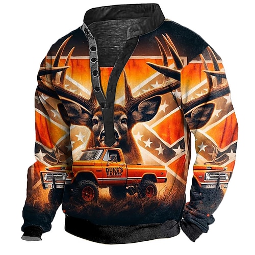 Per uomo Cervo Felpa Da caccia Manica Lunga Collo Alto Regalo Viaggio Abbigliamento casual alla moda Blu Arancione Verde Bottoni Davanti Autunno Inverno progettista S M L XL XXL XXXL