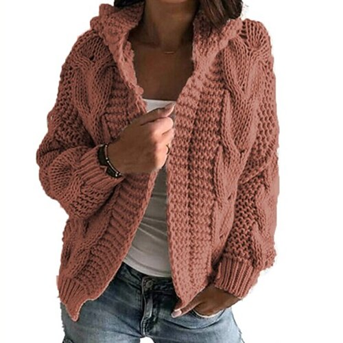 Per donna Felpa Cardigan Streetwear Casual Tinta unica Scollo a V Lavorato a maglia Con cappuccio Manica Lunga Top Regolari Maglia Quotidiano Ferie Uscire Rosso bordeaux Bianco Autunno Inverno