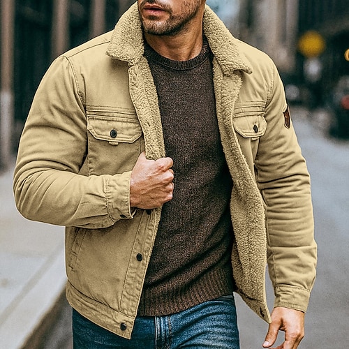 Per uomo Giacca in Pile Giacca Cargo Giacca da Lavoro Formale Casa Giacca a Vento Durevole Tasca Colletto in pile Autunno Inverno Tinta unica Attivo Vintage Colletto Regolare Blu marino Cachi Verde