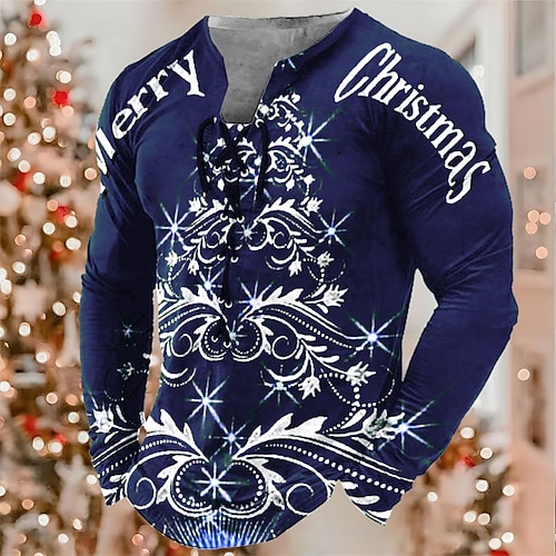 maglietta di natale maglietta da uomo tee tee lettera grafica collare verde nero rosso blu navy 3d stampa all'aperto natale manica lunga lace up stampa abbigliamento abbigliamento di base designer