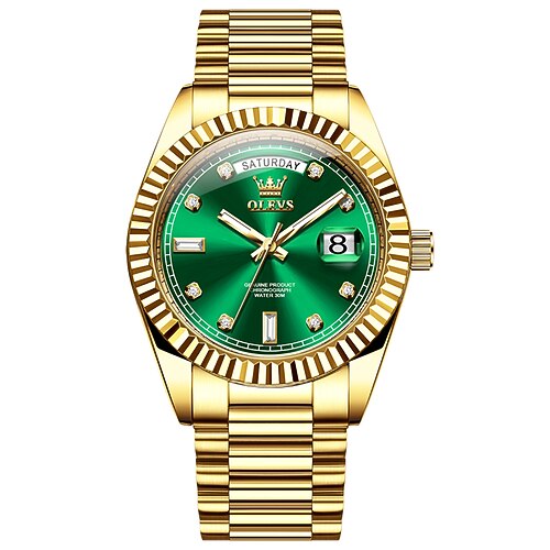 OLEVS Da uomo Orologio meccanico Lusso Moda Strass Affari Luminoso Calendario Impermeabile Cinturino in acciaio inossidabile Guarda