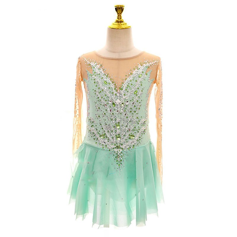 Figure Skating Dress Women's Girls' Ice Skating Dress Green High Elasticity Training Competition Skating Wear Classic Crystal / Rhinestone Long Sleeve Ice Skating Figure Skating