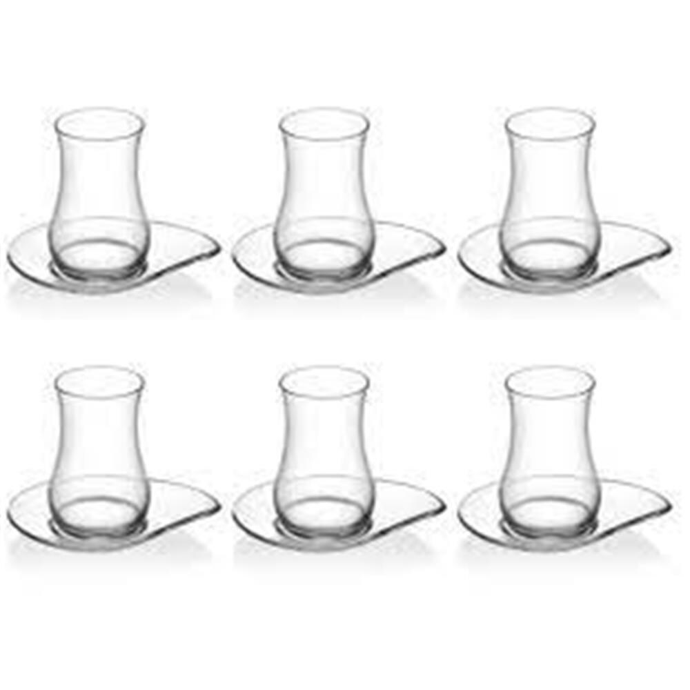 LAV Eva 12-teiliges türkisches Teeglas Set mit Gläsern und Tellern aus Glas