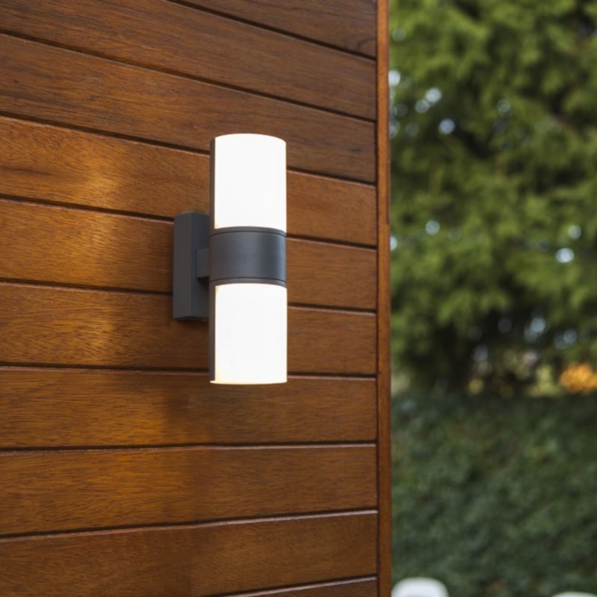 Lutec Cyra - applique murale extérieure - 7 x 12 x 24 cm - 2 x 8W LED inclus - IP54 - gris foncé