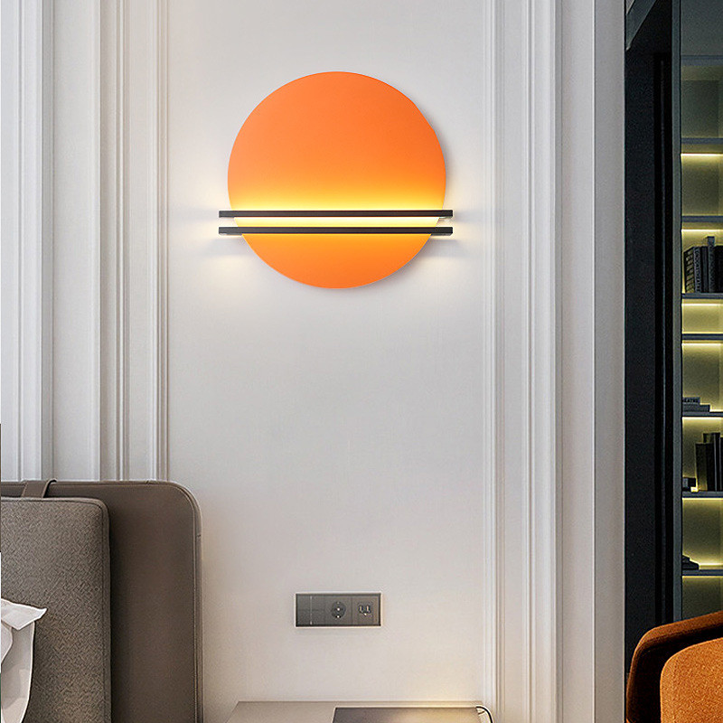 Contemporary Scandinavian Iron Aluminum Round Pinstripe LED Wall Sconce Lamp For Living Room