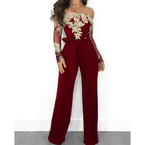 Per donna Tuta Elegante Floreale Manica Lunga Gamba larga Senza Spalle Patchwork Ricamato Feste Streetwear Vestibilità regolare Blu Nero Vino Primavera