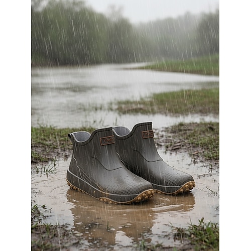 stivali da pioggia corti beige da donna - stivaletti impermeabili con suola antiscivolo design minimalista ed elegante per passeggiate sotto la pioggia, commissioni all'aperto, visite al parco e abbigliamento casual quotidiano